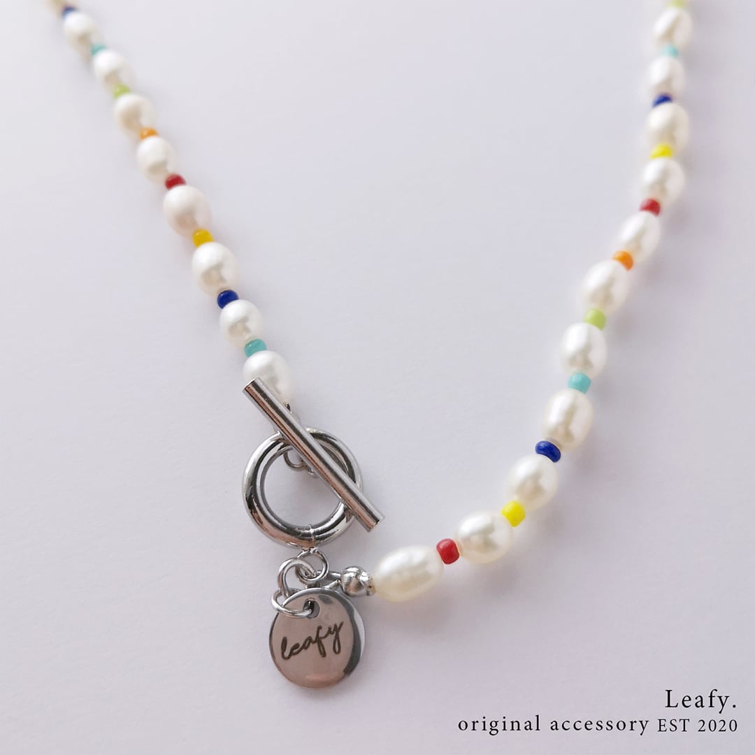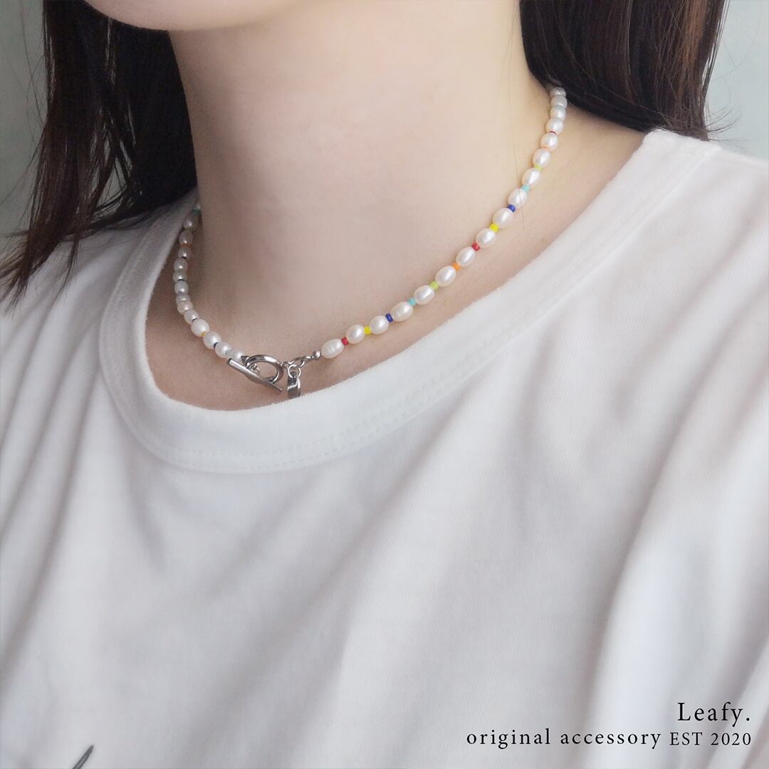 #シンプル #ビーズアクセサリー #アンティーク #淡水パールネックレス #レインボーカラー