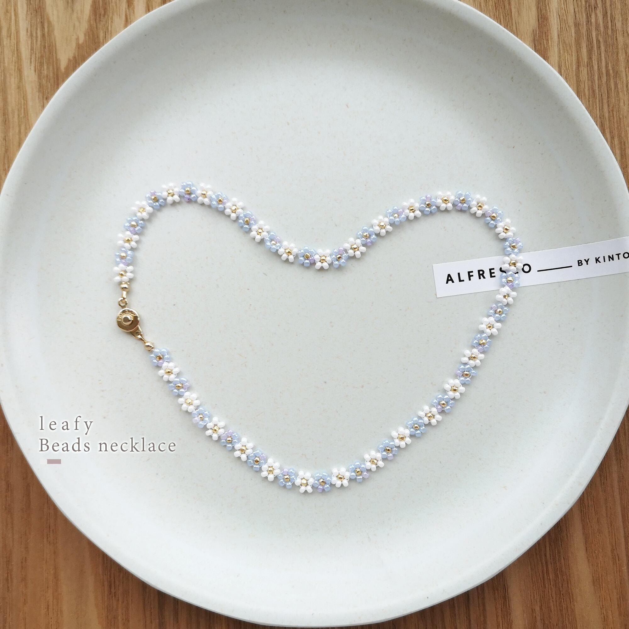 淡色のお花がたくさん並んだ花冠のようなビーズネックレスです。