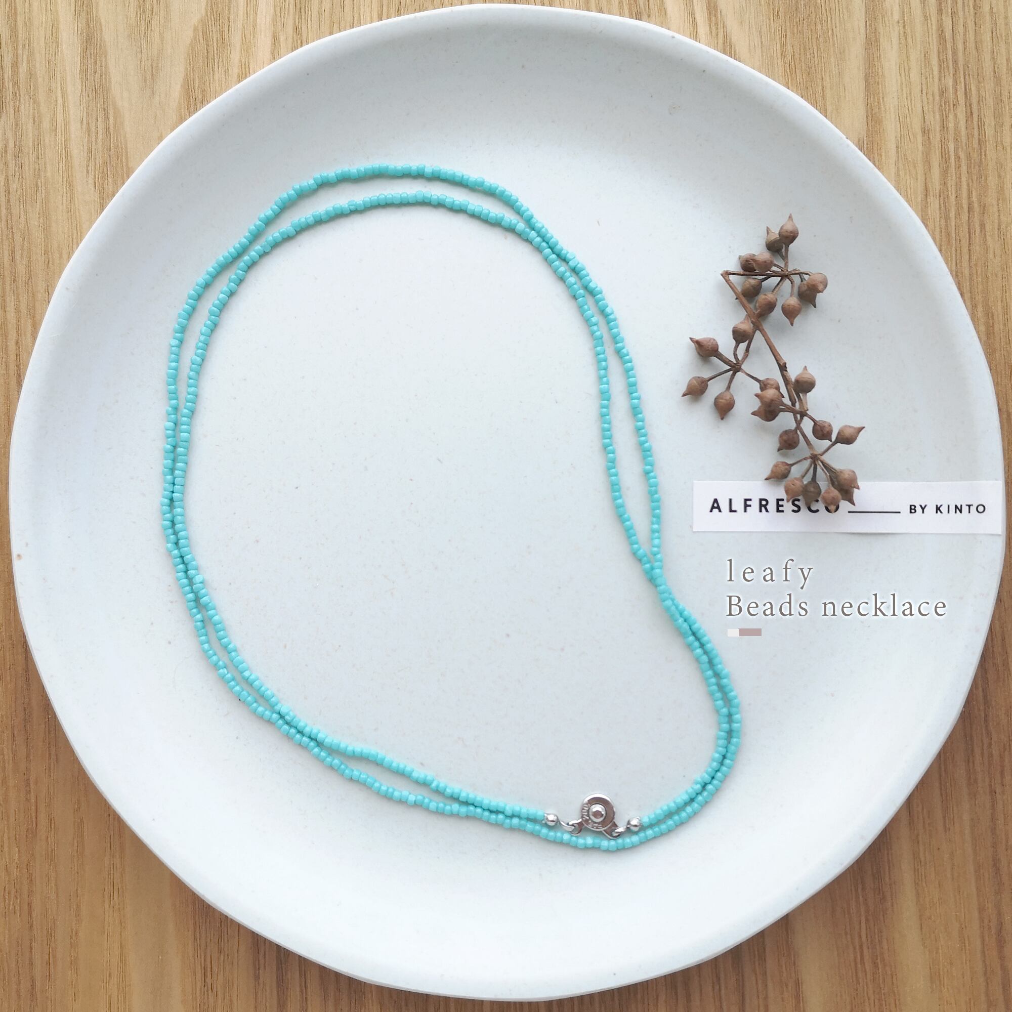 小粒なターコイズカラーのビーズを使った