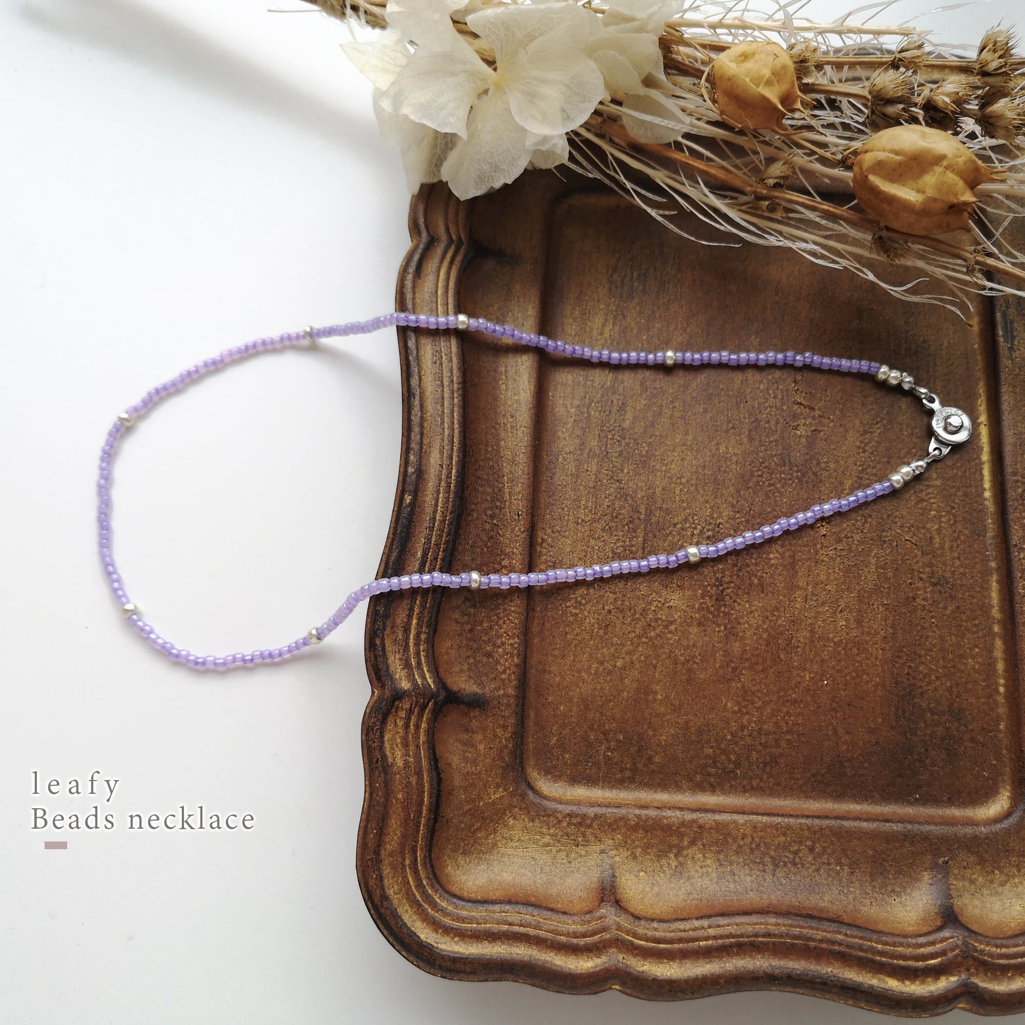 #藤色 #紫 #シンプル #ビーズネックレス #クール #可愛い #シルバー #ビーズアクセサリー