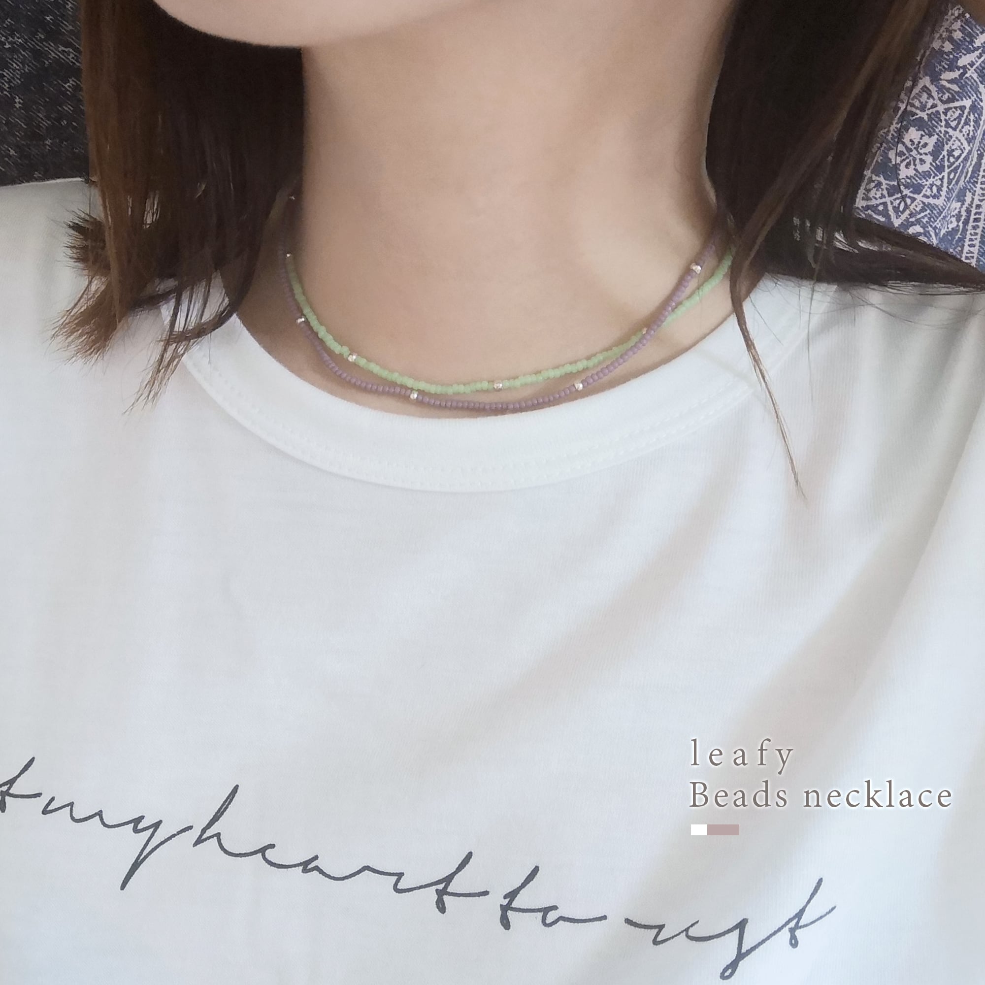 #緑 #グリーン #シンプル #ビーズネックレス #クール #可愛い #シルバー #ビーズアクセサリー