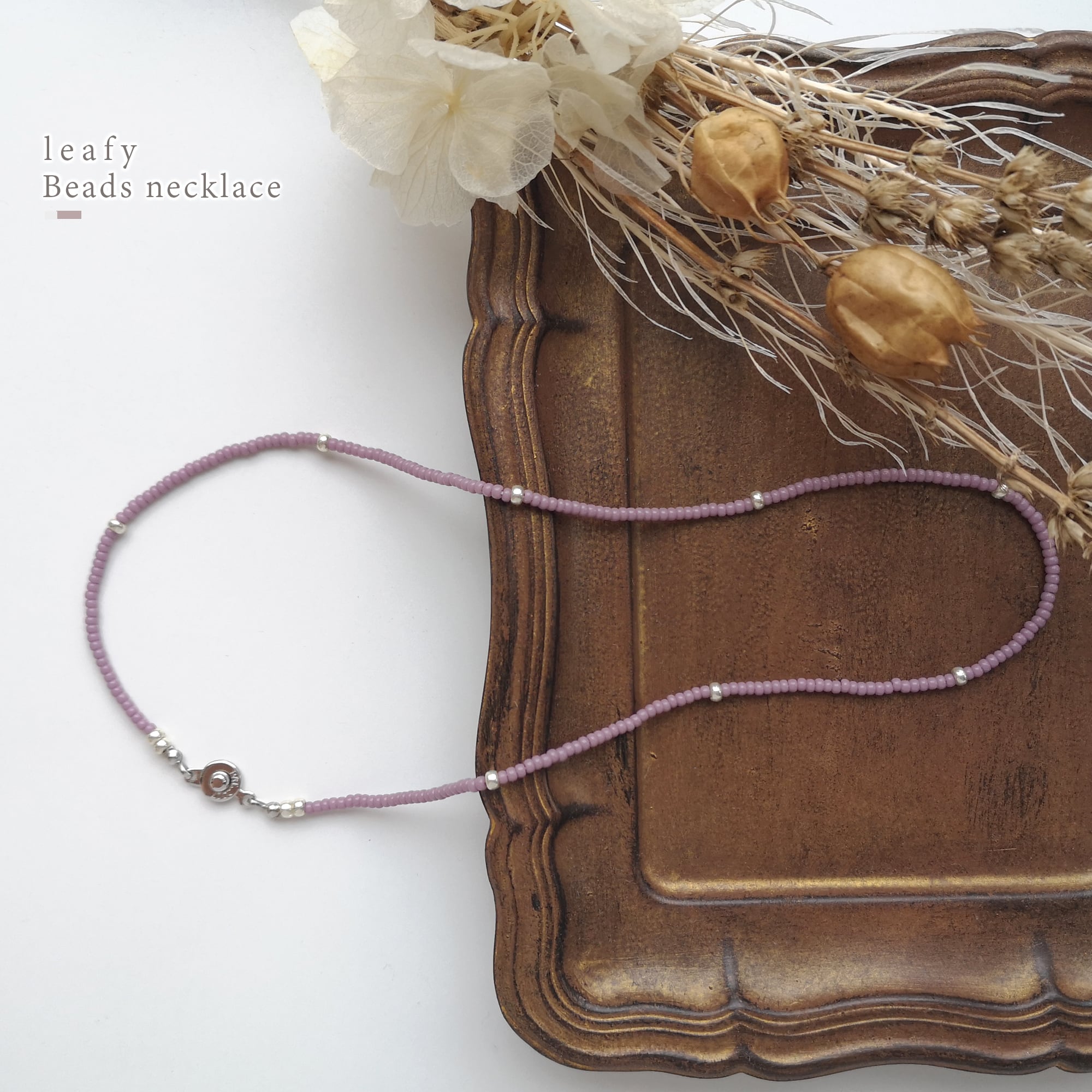 #紫 #パープル #シンプル #ビーズネックレス #クール #可愛い #シルバー #ビーズアクセサリー