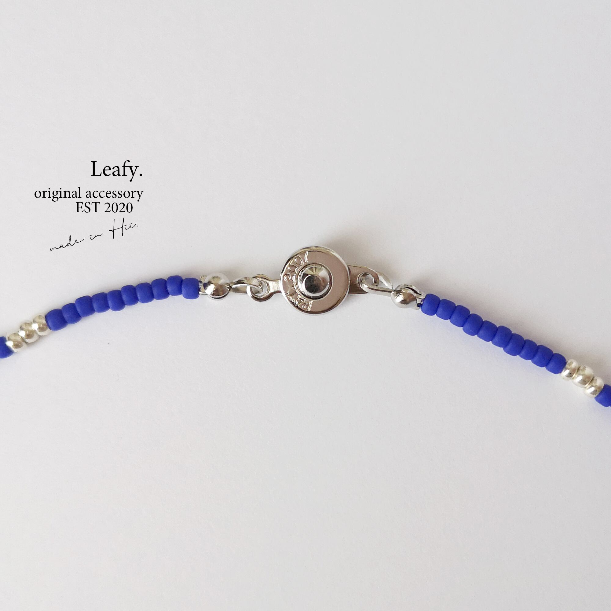 コバルトブルーのビーズネックレス ビーズアクセサリー シルバー シンプル カジュアル チョーカー ショートネックレス