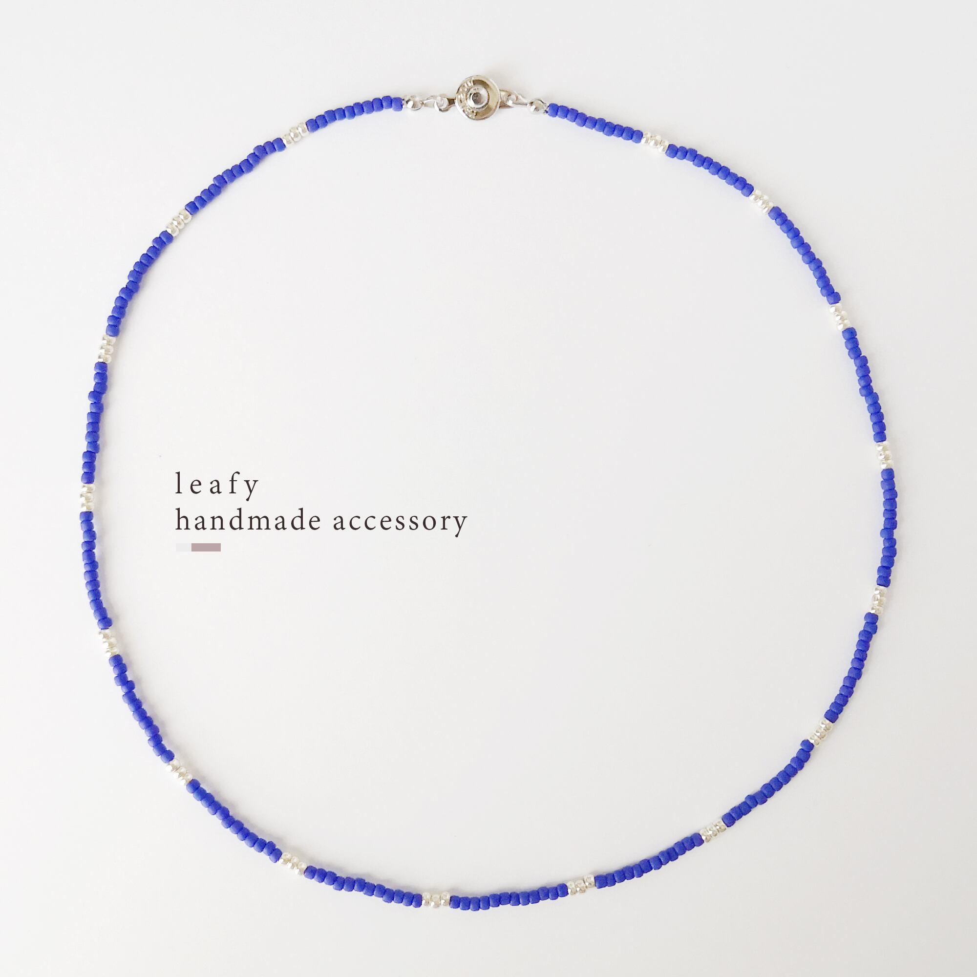コバルトブルーが映えるシンプルなビーズネックレス。